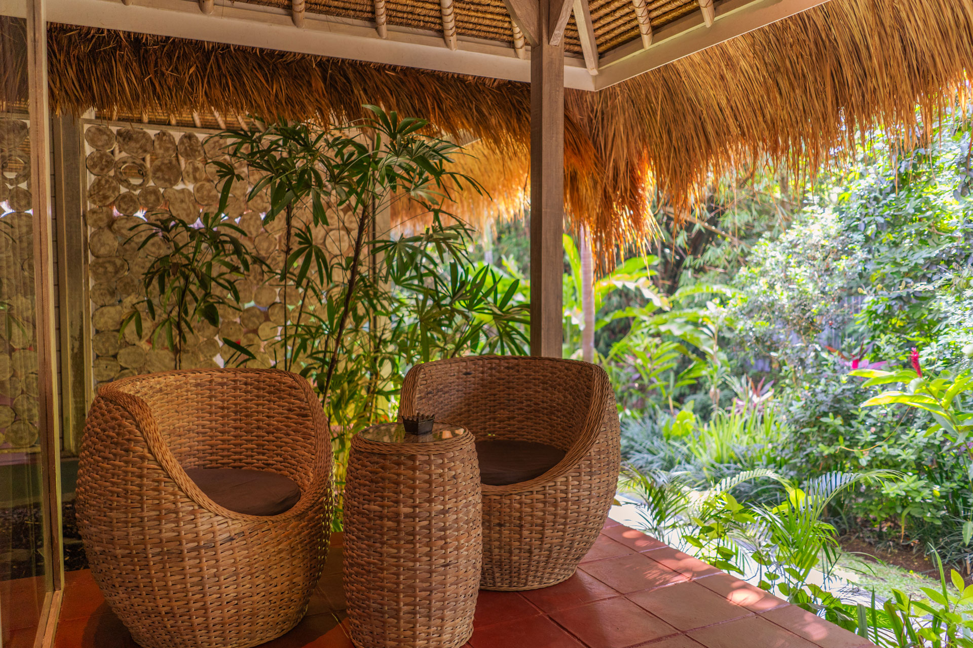 Our 4 charming 40 sqm river view bungalow with a patio can accommodate 2 people with a king size bed equipped with mosquito net, a tropical outdoor bathroom area and a nice dressing with safety case where your valuables will be safe. Enjoy afternoon tea time at the patio riverfront with coffee or tea that is provided in the room. An Internet router is provided in every bungalow for the high speed connection.